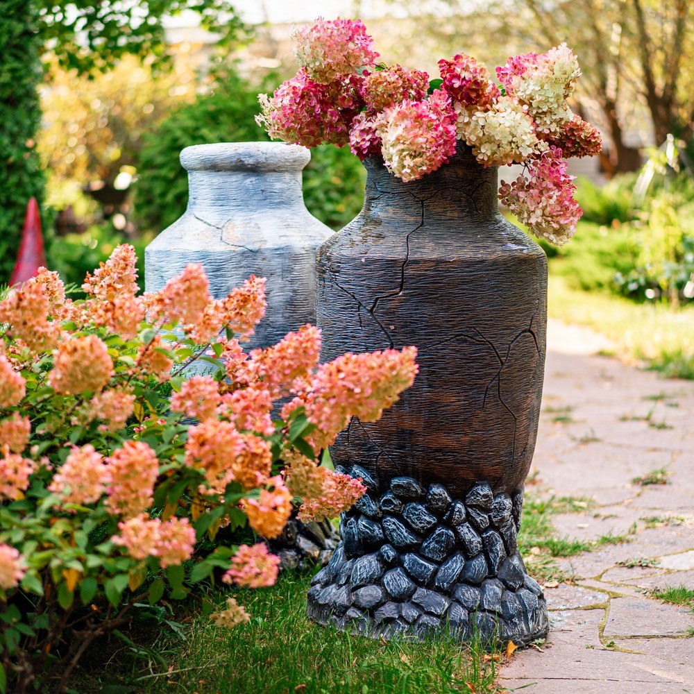 Оригинальный вазон для цветов изготовлен в виде Кувшина, материал - стеклопластик, устойчив к перепадам температур и осадкам. Прекрасно смотрится как на улице, так и в интерьере.