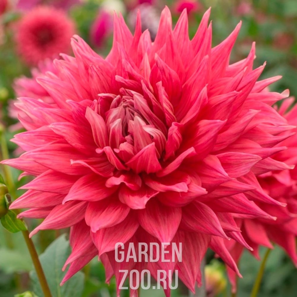 В упаковке 1 луковица. Кактусовая георгина Крив Коер (Creve Coeur) - очень крупное многолетнее садовое растение с перистыми листьями и оригинальными соцветиями-корзинками. Предпочитает расти в солнечных местах, на плодородной, щелочной, хорошо дренированной почве. Высота растения 100 см. Куст прямостоячий, ветвистый, с прочными стеблями. Корневая система представлена корнеклубнем, содержащем большое количество питательных веществ. Продолжительность жизни одного корнеклубня 4-6 лет. Цветок крупный, махровый, диаметром 25 см, каждый лепесток скрученный, с острым окончанием. Окрас ярко-красный. Листья небольшие, овальные и блестящие, тёмно-зелёного цвета. Цветение пышное и обильное с июня до самих заморозков. В засушливую погоду обязателен полив - почва должна быть постоянно влажной. Многолетнее травянистое растение, неморозостойкое. Применяется в свободных композициях и групповых посадках, подходит для срезки.