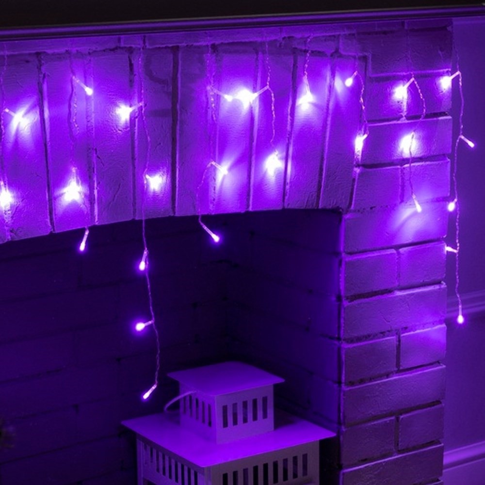 Гирлянда Бахрома ECO 1,8х0,5м фиолетовое свечение 8 режимов прозрачная нить