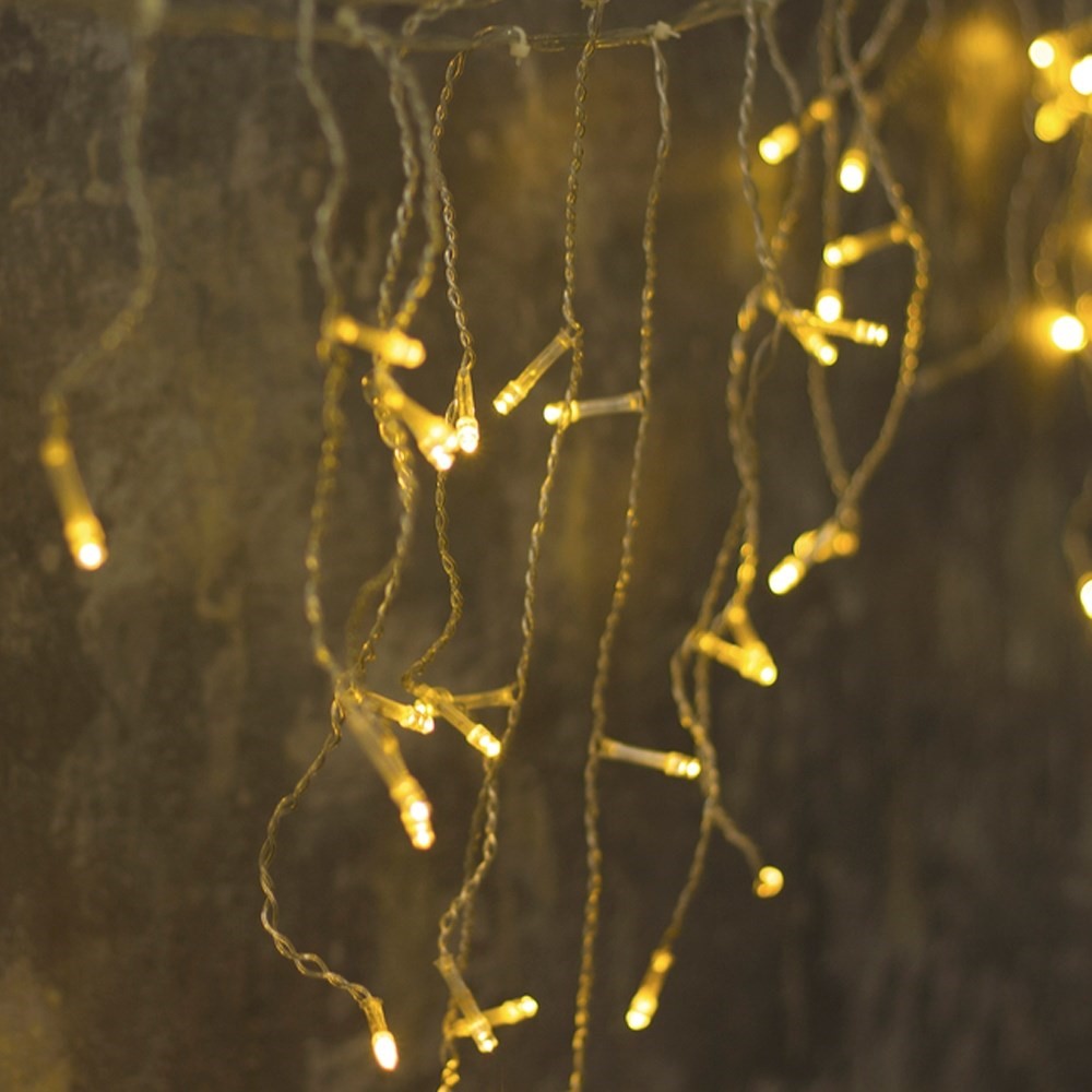 Светодиодная гирлянда-бахрома с белыми диодами теплого оттенка свечения – отличное средство для декорирования помещения. С помощью такого незамысловатого украшения Вы создадите в помещении атмосферу уюта и тепла. Белый цвет диодов гирлянды может послужить также и дополнительным источником света, делая комнату более освещенной и яркой.