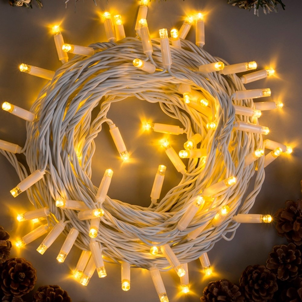 Данная гирлянда имеет белый ПВХ и Теплый белый цвет свечения светодиодов. Гирлянда предназначена для использования как внутри помещения, так и снаружи, шнур питания/трансформатор в комплект не входит.