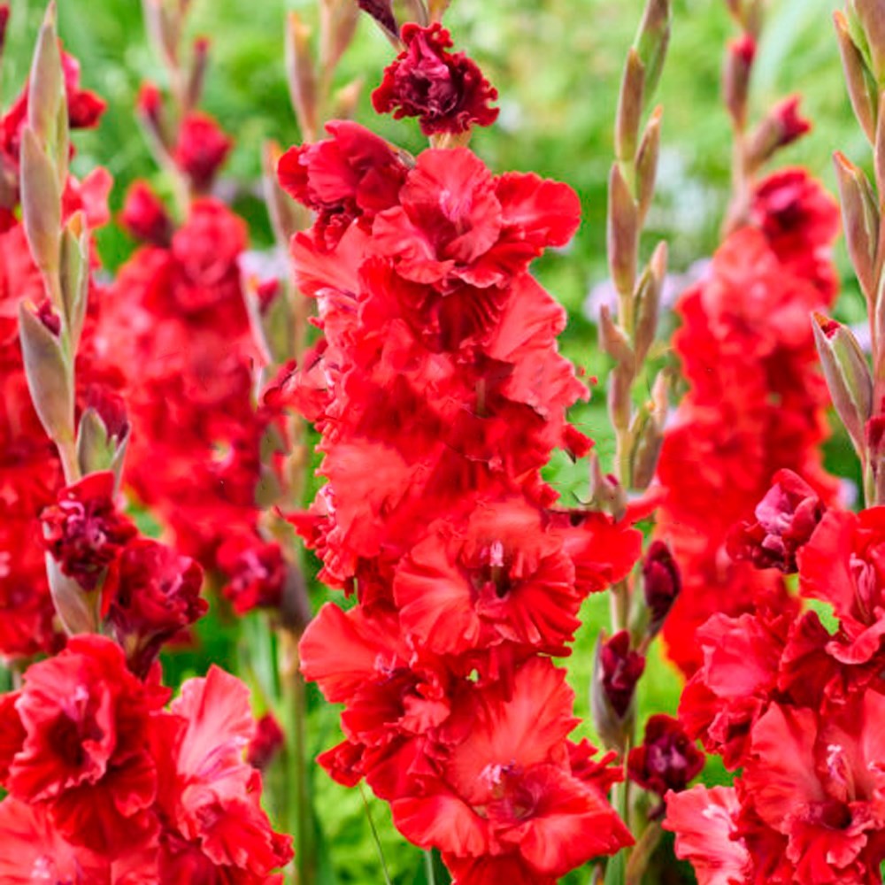 В упаковке 7 луковиц. Гладиолус Вельвет Распберри - цветоносы высокие, могут достигать до 120-130 см. Цветки крупные, диаметром около 15 см. Лепестки гофрированные, насыщенной малиново-бордовой окраски. Отлично подходит для создания ярких цветочных композиций и букетов. Устойчив к неблагоприятным условиям, долго сохраняет декоративность после срезки.