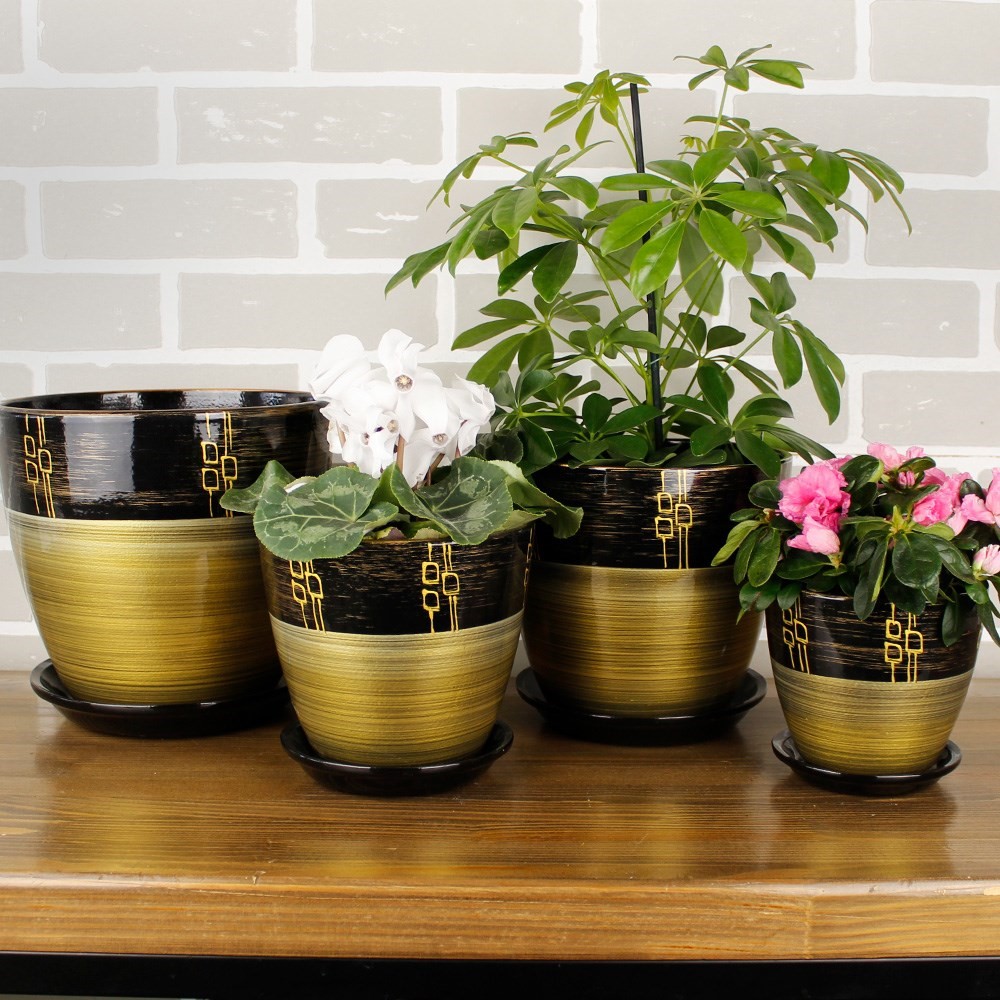 Набор горшков РОСПИСЬ бутон ритм бронза 4шт
