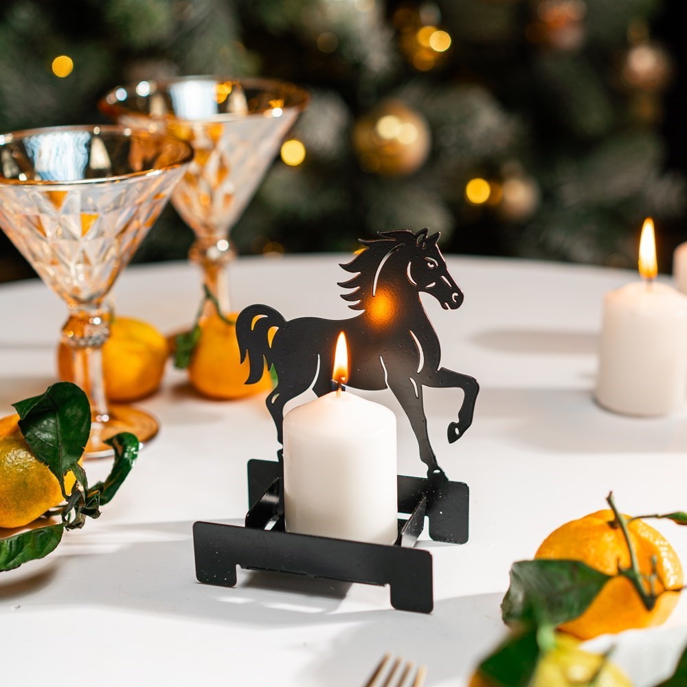 Подсвечник новогодний Лошадь на 1 свечу металл чёрный 730-091B