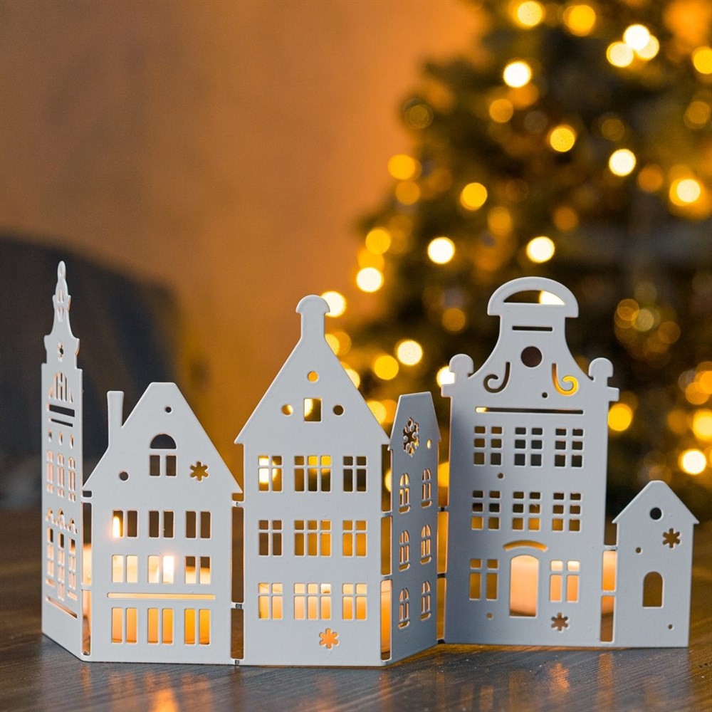 - Создаёт атмосферу. Мгновенно превращает стол в новогоднюю сказку. Детализированный силуэт Домов города будет отбрасывать красивые тени при свечах или гирляндах, делая ваш праздник по-настоящему волшебным.